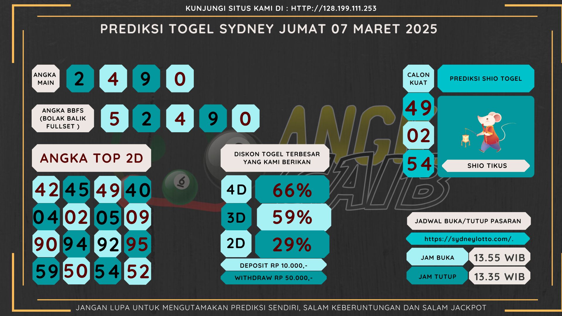 Bocoran Angka Sydney Hari Jumat 07 Maret 2025
