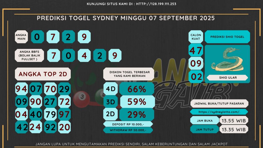 Bocoran Angka Sydney Hari Minggu 07 September 2025