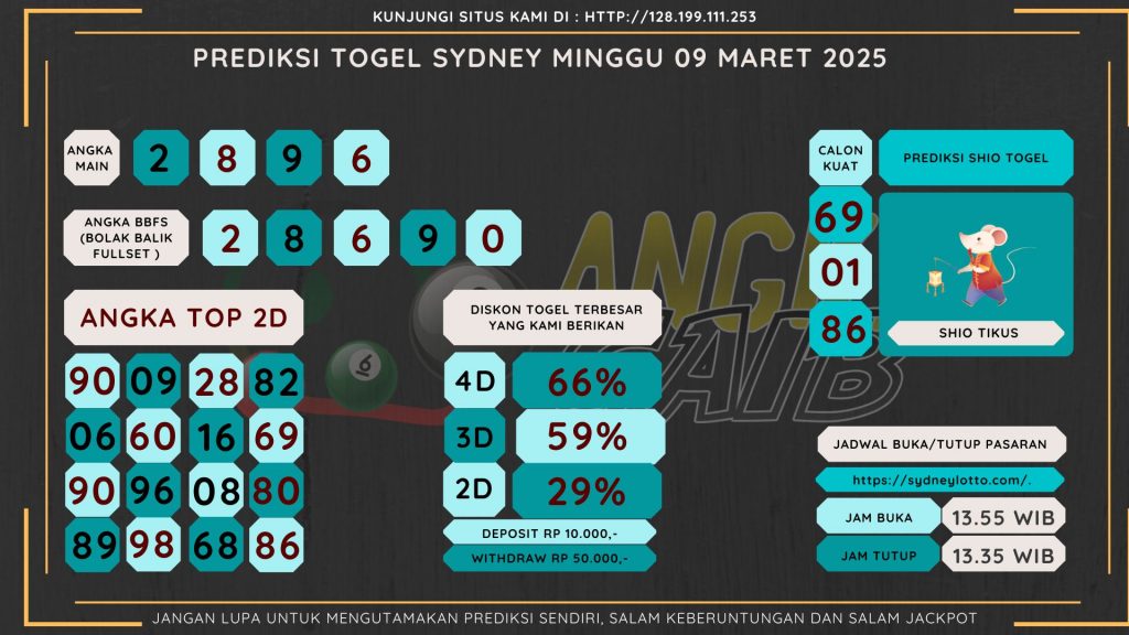 Bocoran Angka Sydney Hari Minggu 09 Maret 2025