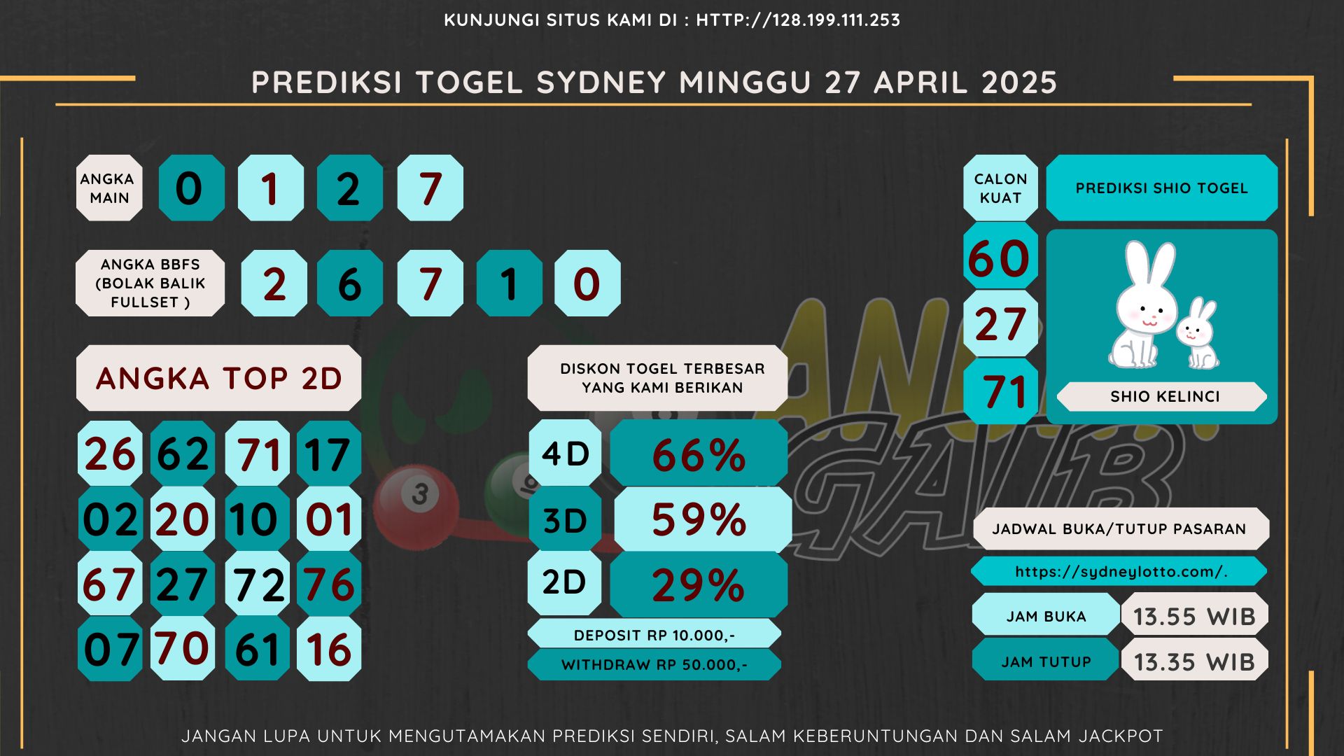 Bocoran Angka Sydney Hari Minggu 27 April 2025