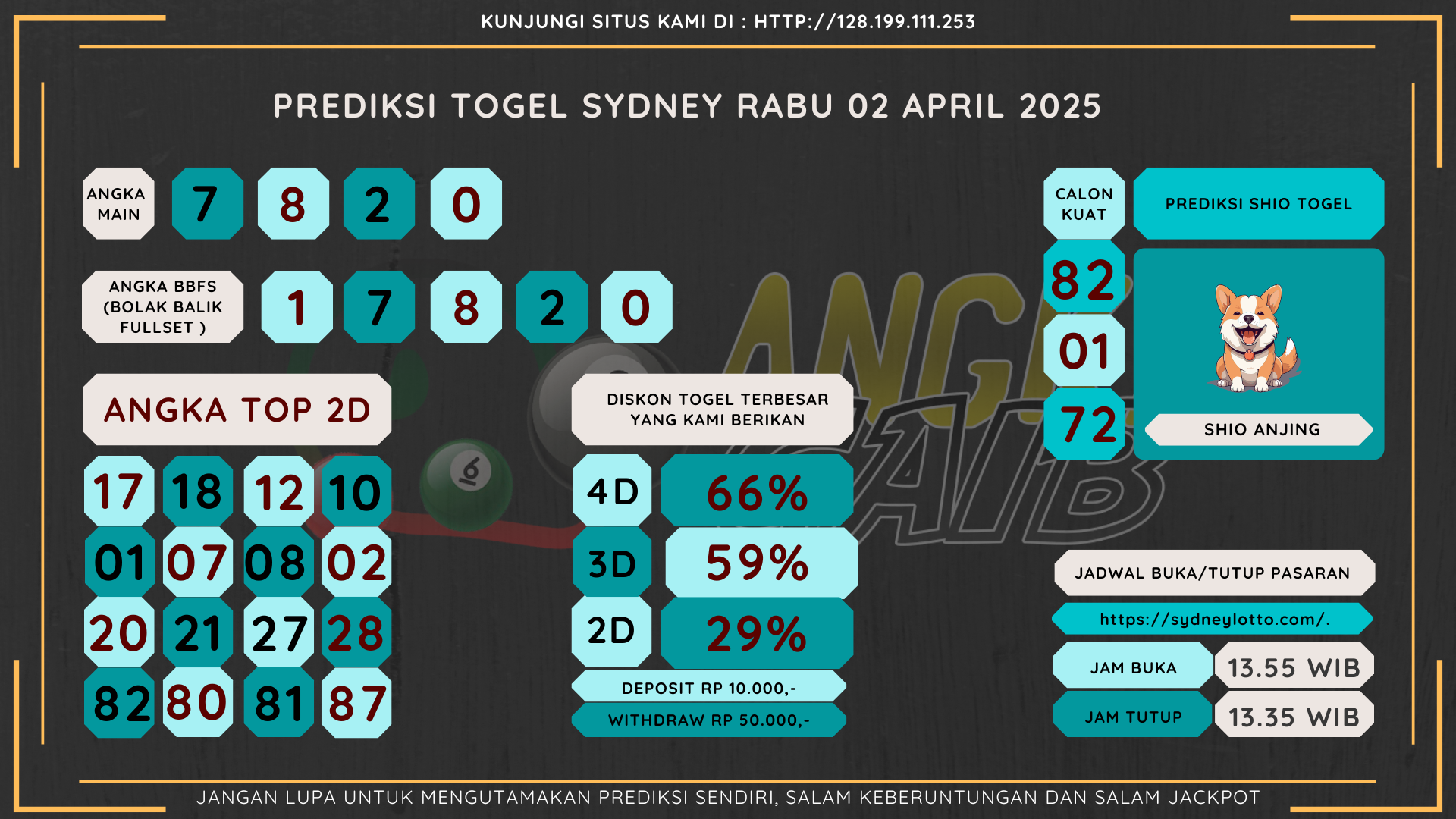 Bocoran Angka Sydney Hari Rabu 02 April 2025