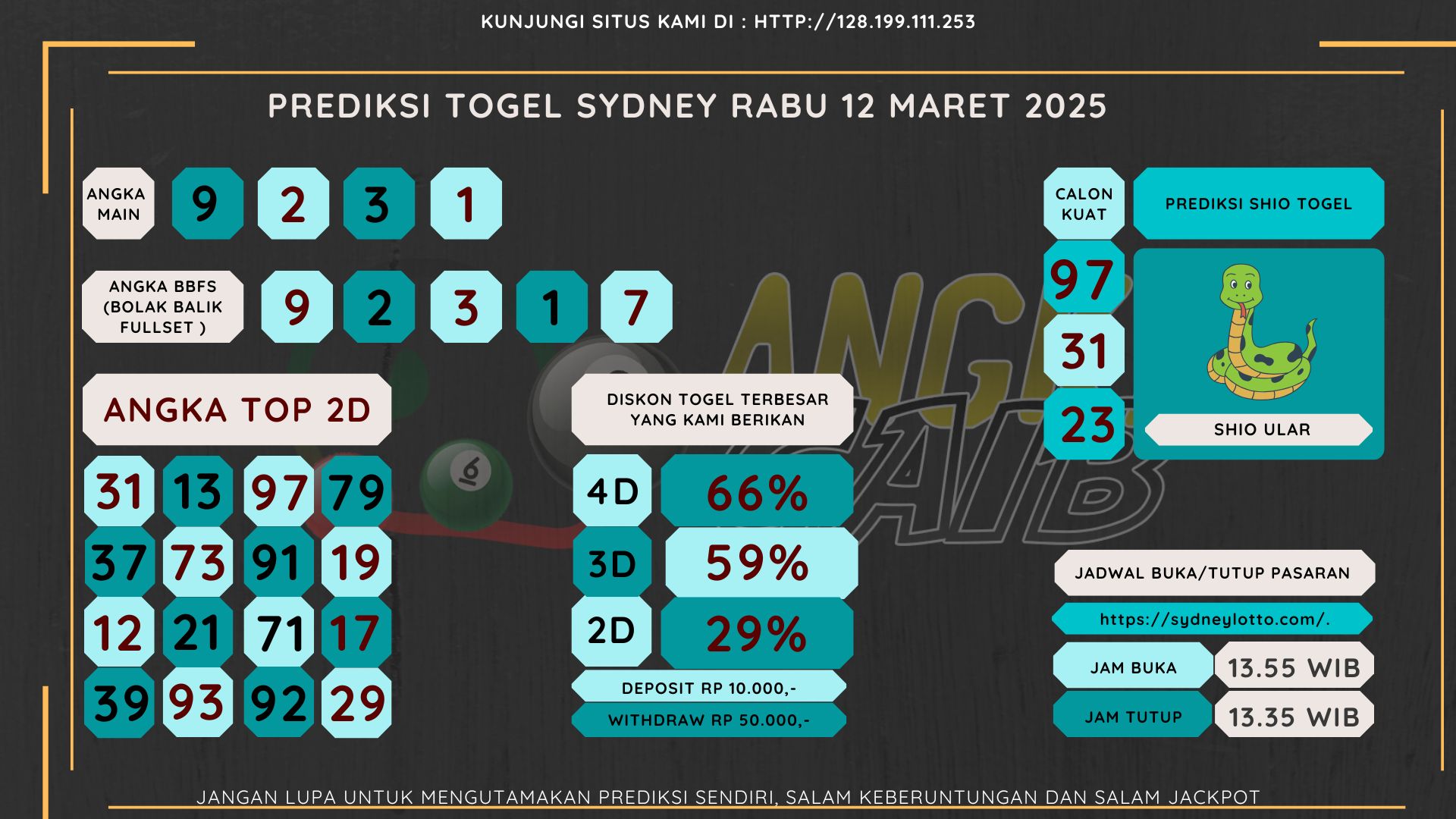 Bocoran Angka Sydney Hari Rabu 12 Maret 2025