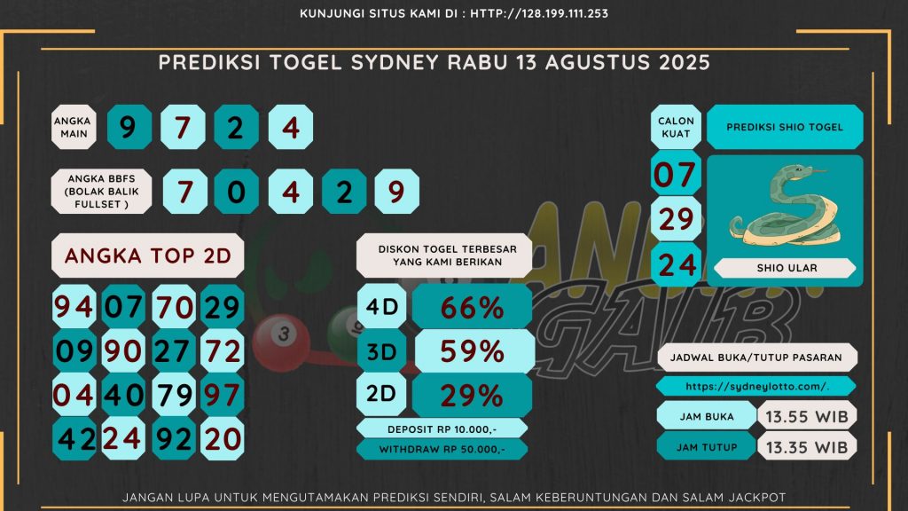 Bocoran Angka Sydney Hari Rabu 13 AGUSTUS 2025