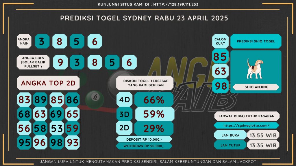 Bocoran Angka Sydney Hari Rabu 23 April 2025