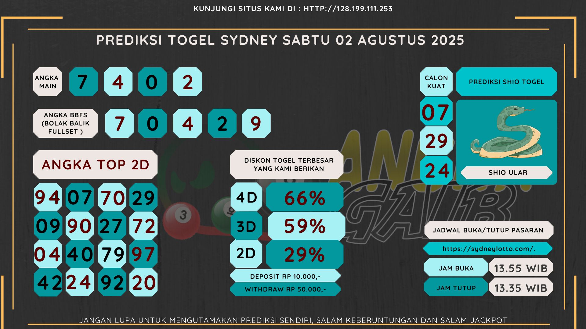 Bocoran Angka Sydney Hari Sabtu 02 AGUSTUS 2025