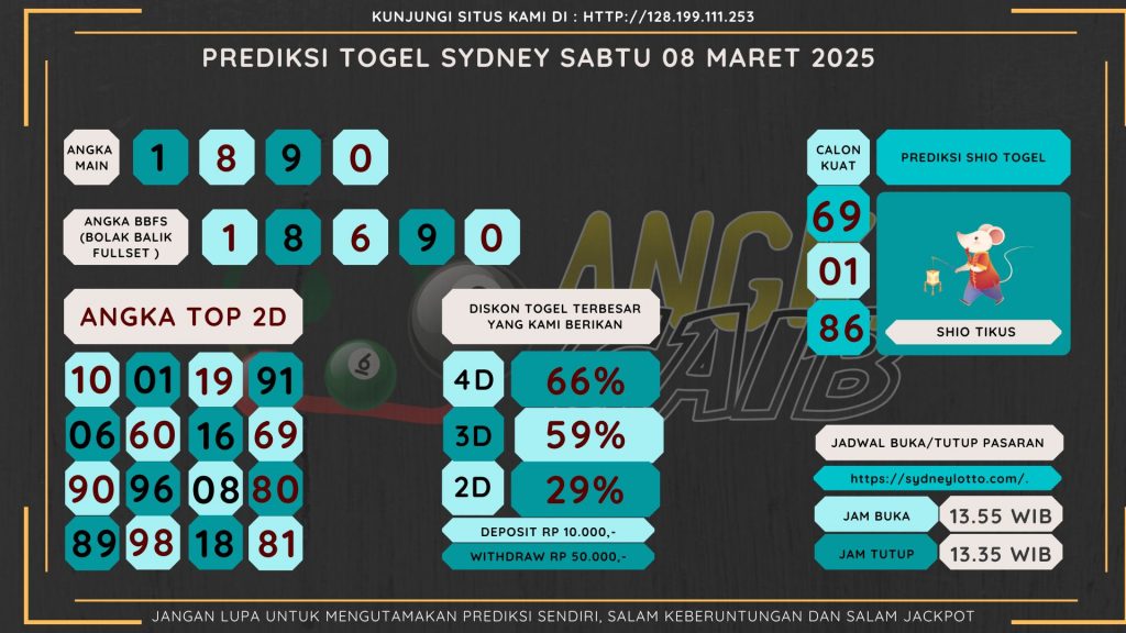 Bocoran Angka Sydney Hari Sabtu 08 Maret 2025
