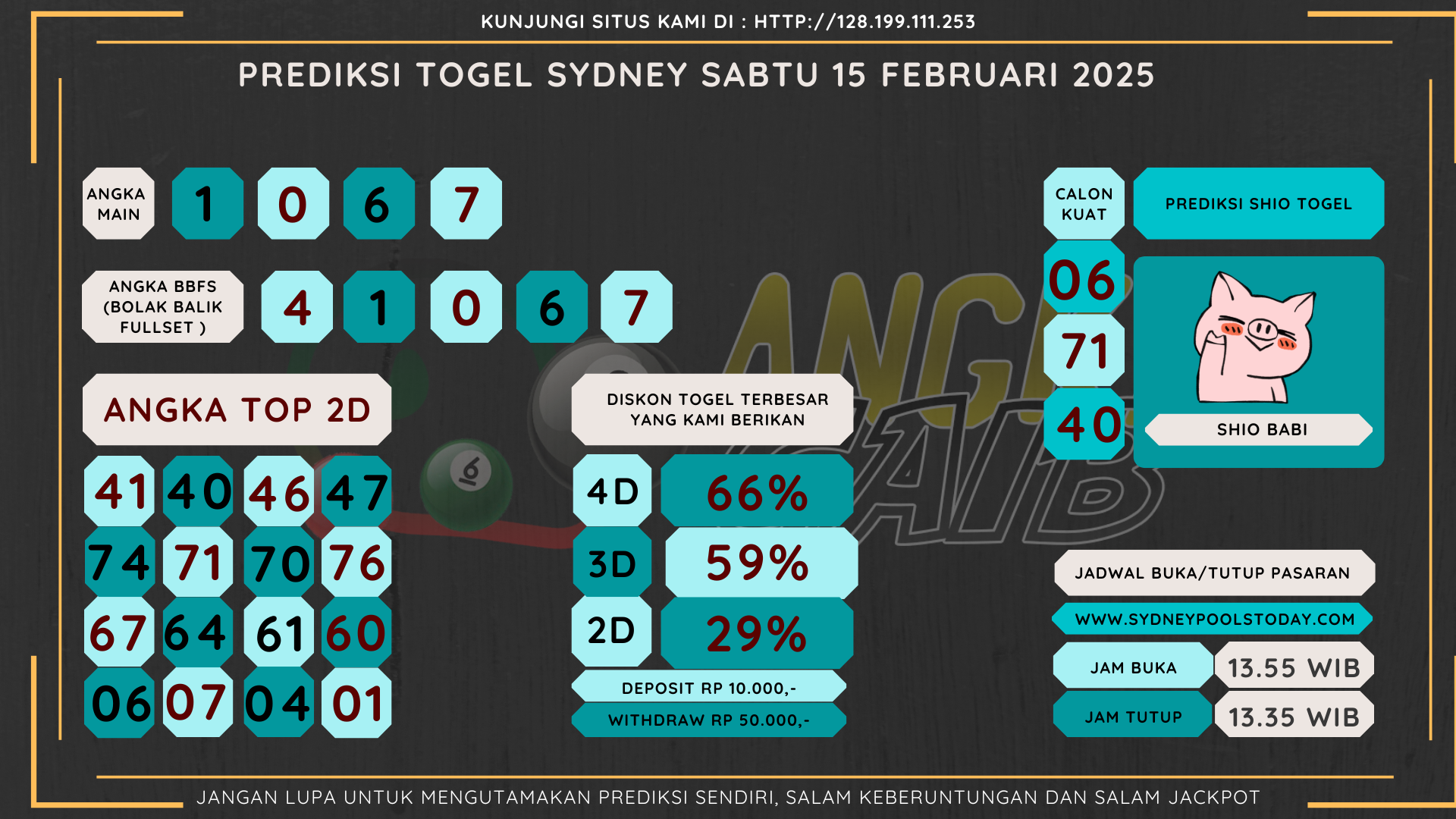 Bocoran Angka Sydney Hari Sabtu 15 Februari 2025