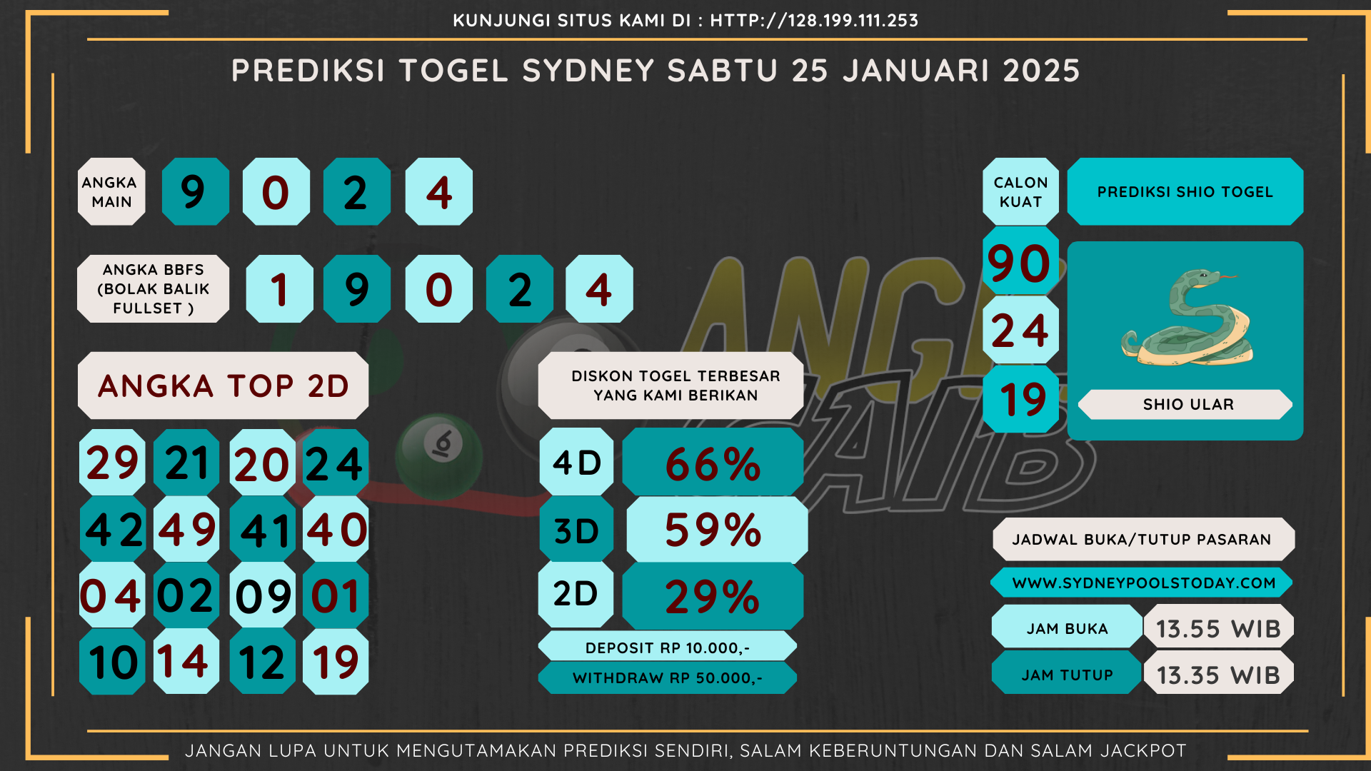 Bocoran Angka Sydney Hari Sabtu 25 Januari 2025