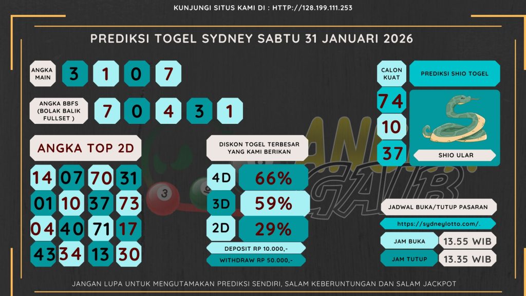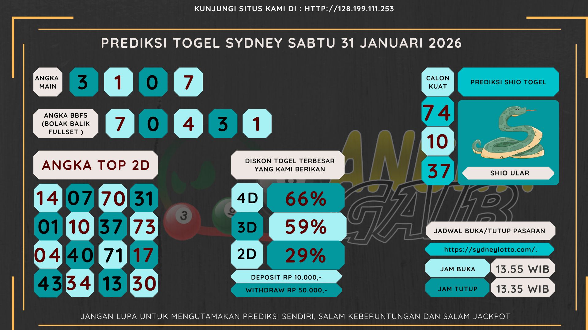 Bocoran Angka Sydney Hari Sabtu 31 JANUARI 2026