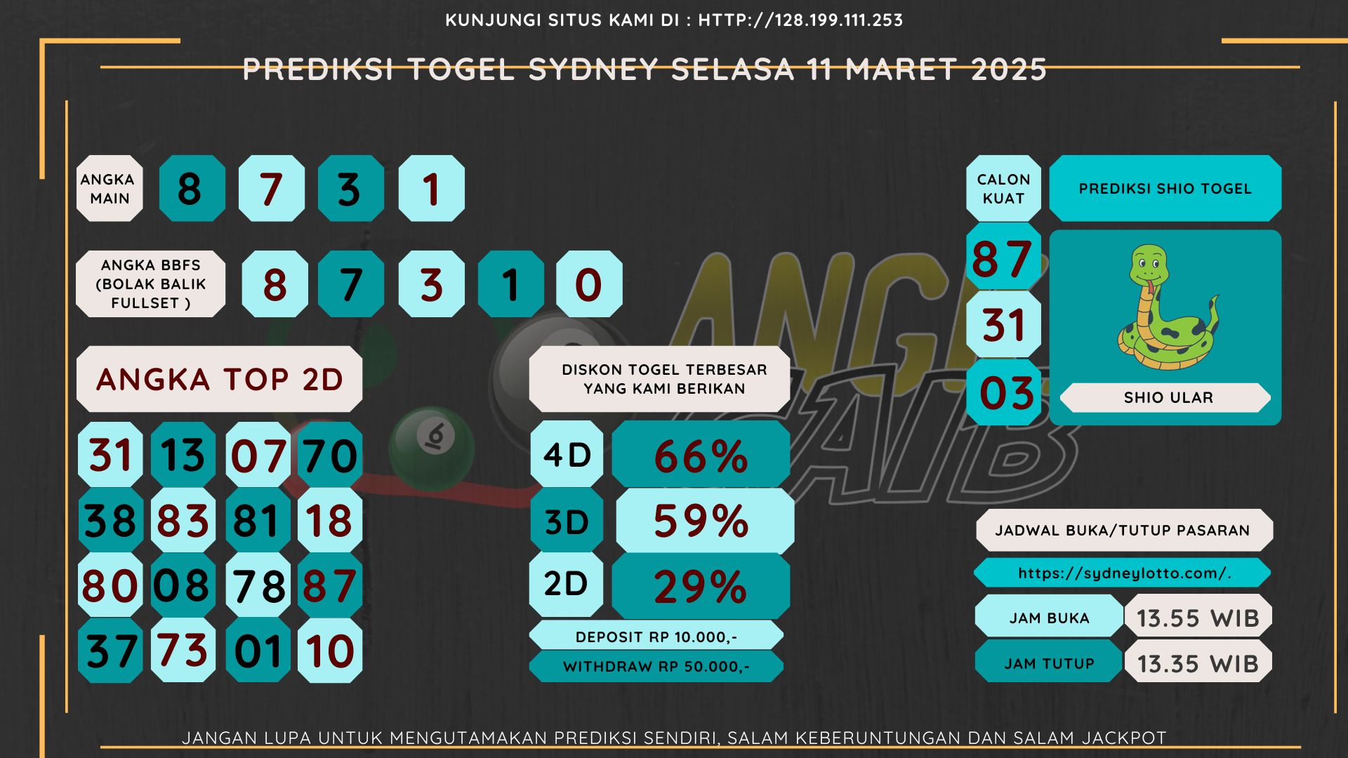 Bocoran Angka Sydney Hari Selasa 11 MARET 2025