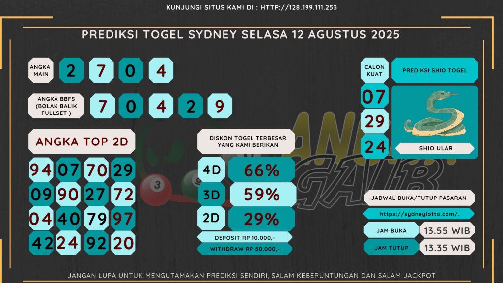 Bocoran Angka Sydney Hari Selasa 12 AGUSTUS 2025