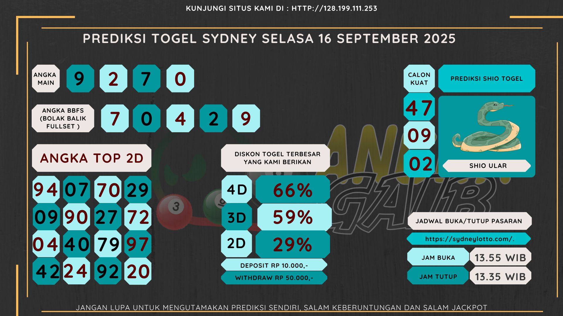 Bocoran Angka Sydney Hari Selasa 16 September 2025