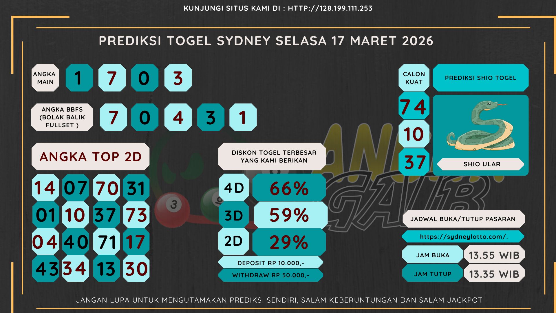 Bocoran Angka Sydney Hari Selasa 17 Maret 2026