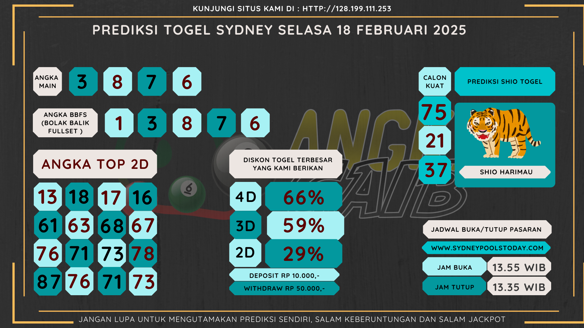 Bocoran Angka Sydney Hari Selasa 18 Februari 2025