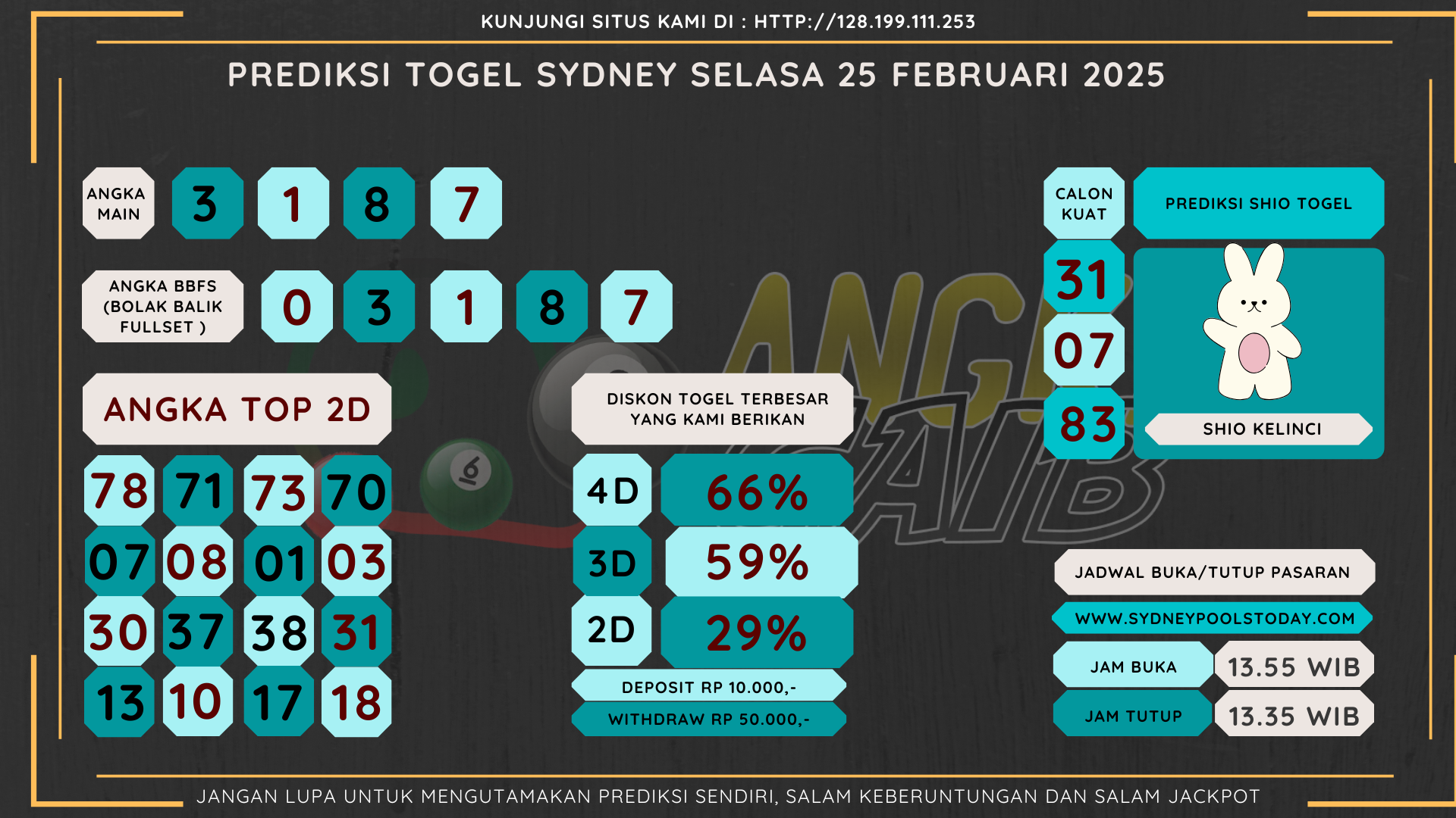 Bocoran Angka Sydney Hari Selasa 25 Februari 2025