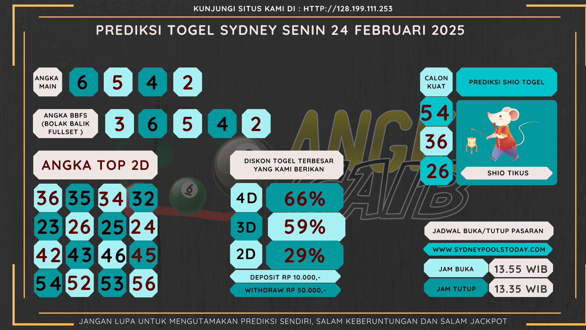 Bocoran Angka Sydney Hari Senin 24 Februari 2025