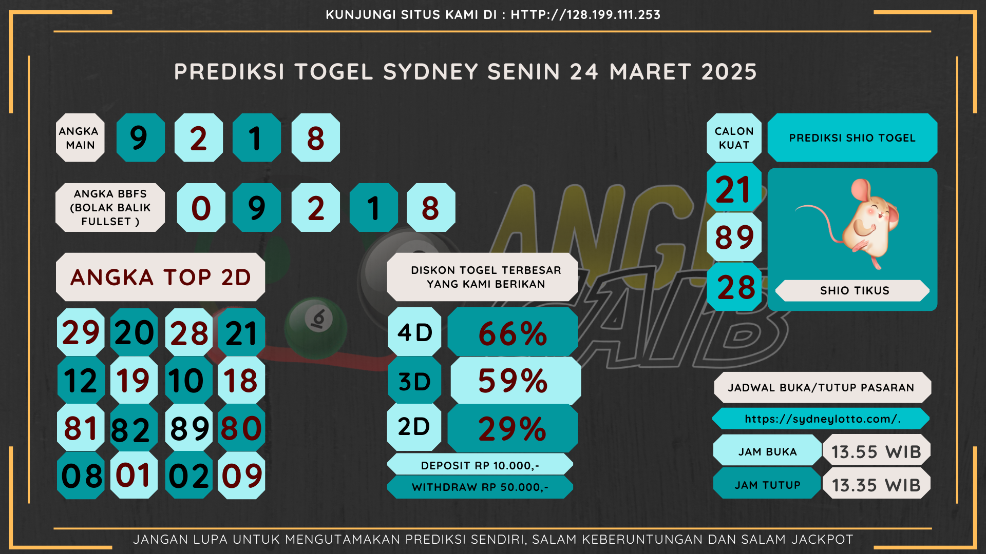 Bocoran Angka Sydney Hari Senin 24 Maret 2025